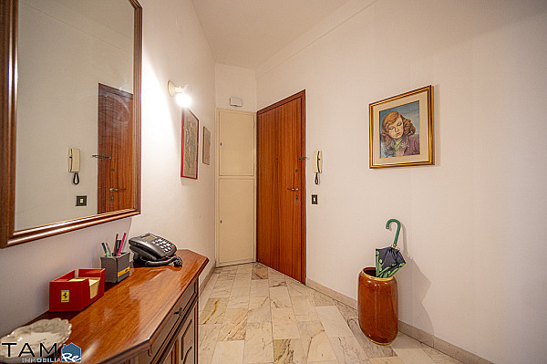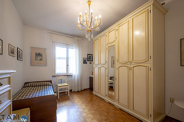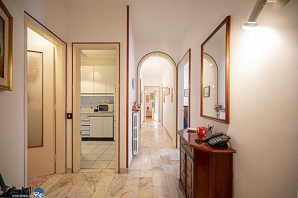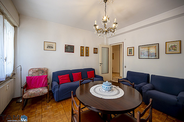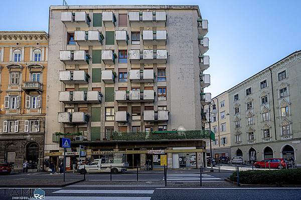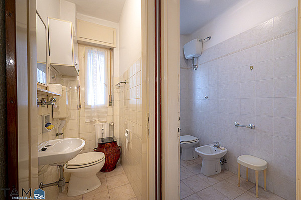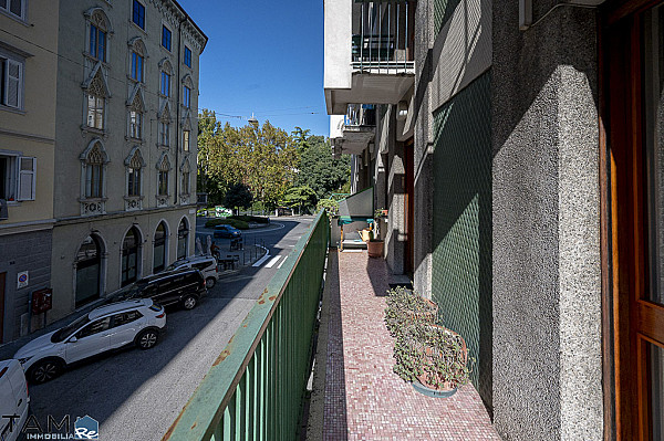GIARDINO PUBBLICO | VIA GIULIA. Al primo piano alto di uno stabile provvisto di ascensore. L'appartamento, un ampio trilocale da rimodernare con vista proprio sul giardino pubblico, si compone di soggiorno con lungo terrazzo, 2 camere da letto matrimoniali, una cucina abitabile con piacevole veranda, un bagno finestrato completo, un secondo bagno di servizio, un comodo ripostiglio e una cantina al piano seminterrato. La posizione è centralissima e in prossimità dei mezzi pubblici e dei principali servizi che offre la zona del Viale XX Settembre e di Via Giulia. Il riscaldamento è centralizzato e incluso nelle spese condominiali.