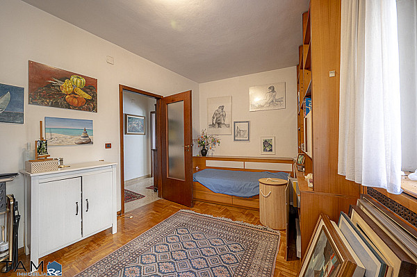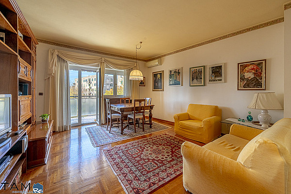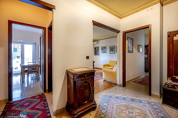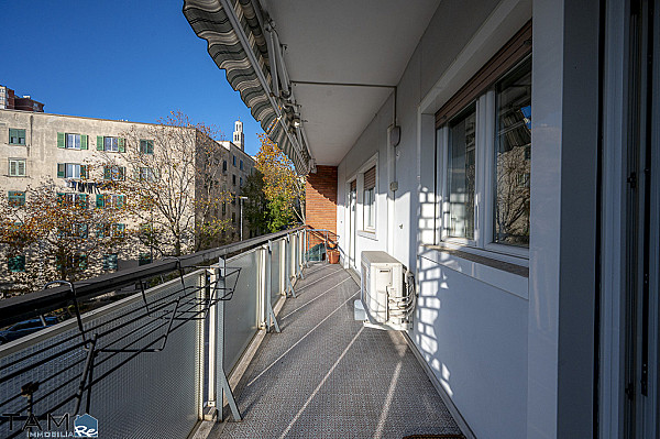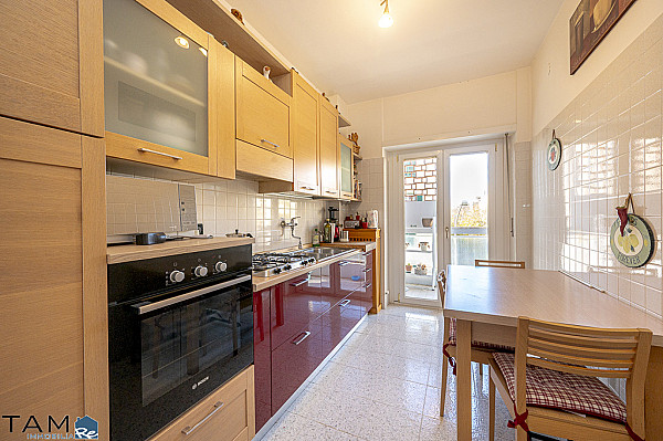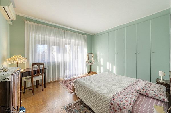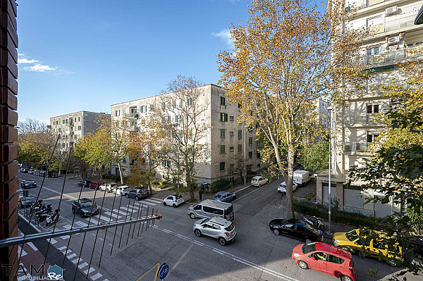 L’appartamento, in ottime condizioni interne, offre una distribuzione pratica e molto vivibile. L’ingresso accogliente conduce al soggiorno, un ambiente luminoso grazie alla grande porta-finestra che si apre su uno dei tre poggioli, ideale per ritagliarsi un momento all’aperto. La zona notte ospita due camere matrimoniali dalle metrature generose, entrambe dotate di porte-finestre che affacciano sugli altri poggioli.