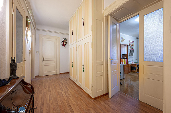 La disposizione interna si sviluppa lungo un corridoio attrezzabile, che conduce alle diverse stanze della casa: due camere matrimoniali e due camere singole, tutte con dimensioni davvero generose e soffitti alti, tipici dei palazzi storici. A completamento della parte funzionale troviamo una cucina abitabile, un bagno completo e finestrato, oltre a un comodo ripostiglio/lavanderia.