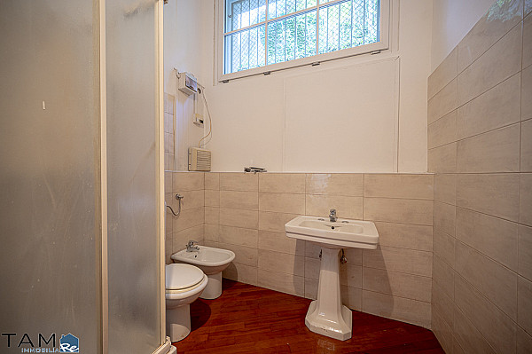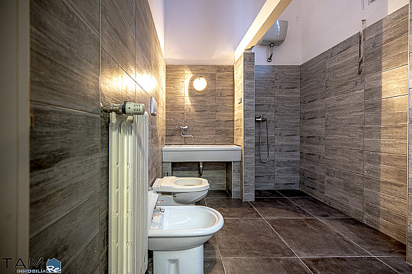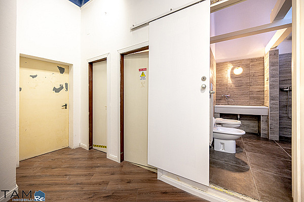 Attualmente la proprietà è organizzata in quattro ampi vani, ciascuno dotato di bagno privato, oltre a una grande area comune, un ulteriore servizio e diversi locali accessori. Questa distribuzione si presta perfettamente alla realizzazione di studi associati, ambulatori, coworking o spazi destinati a più professionisti.